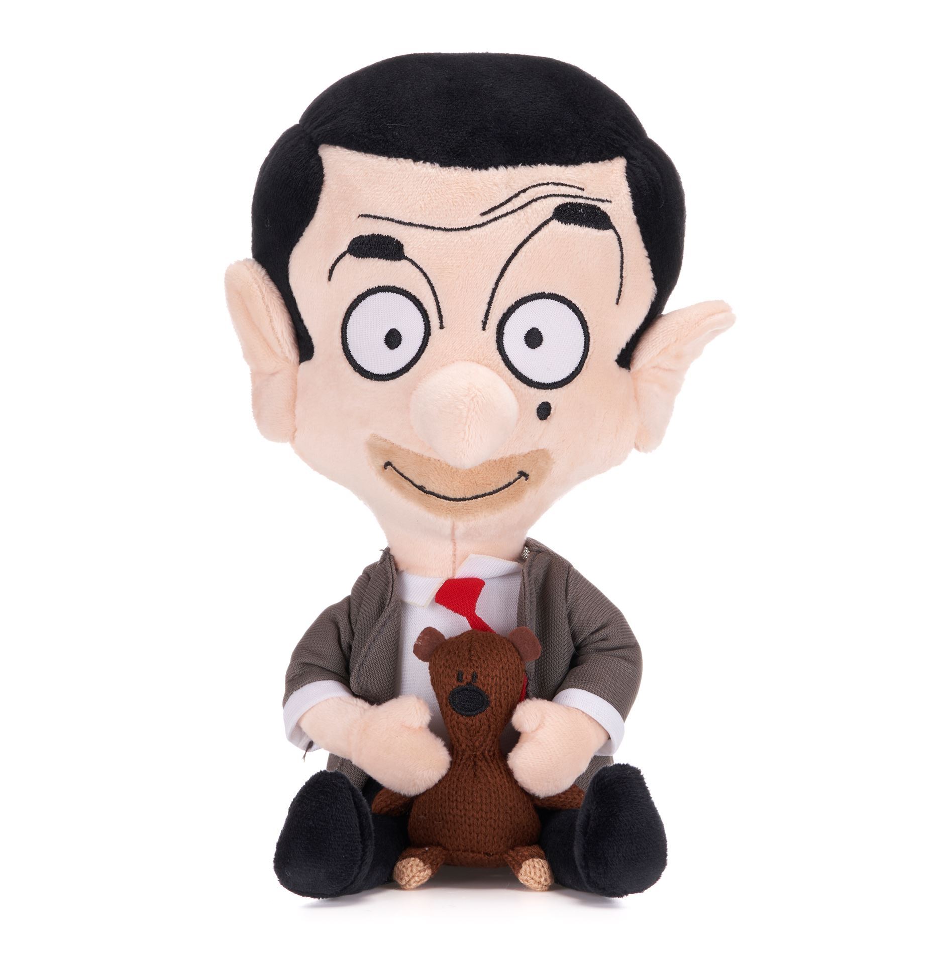 Fans of the popular and iconic Mr Bean show will love cuddling up and playing with this Mr Bean soft plush toy that is holding his favourite little brown teddy bear. This Mr Bean holding his little brown teddy bear soft toy has been produced using the highest quality fabrics, the softest stuffing and excellent detailing to bring Mr Bean to life in the hands of fans. Mr Bean holding his teddy bear soft plush toy measures approximately 10” (26cm) in height. This soft toy is suitable from birth.