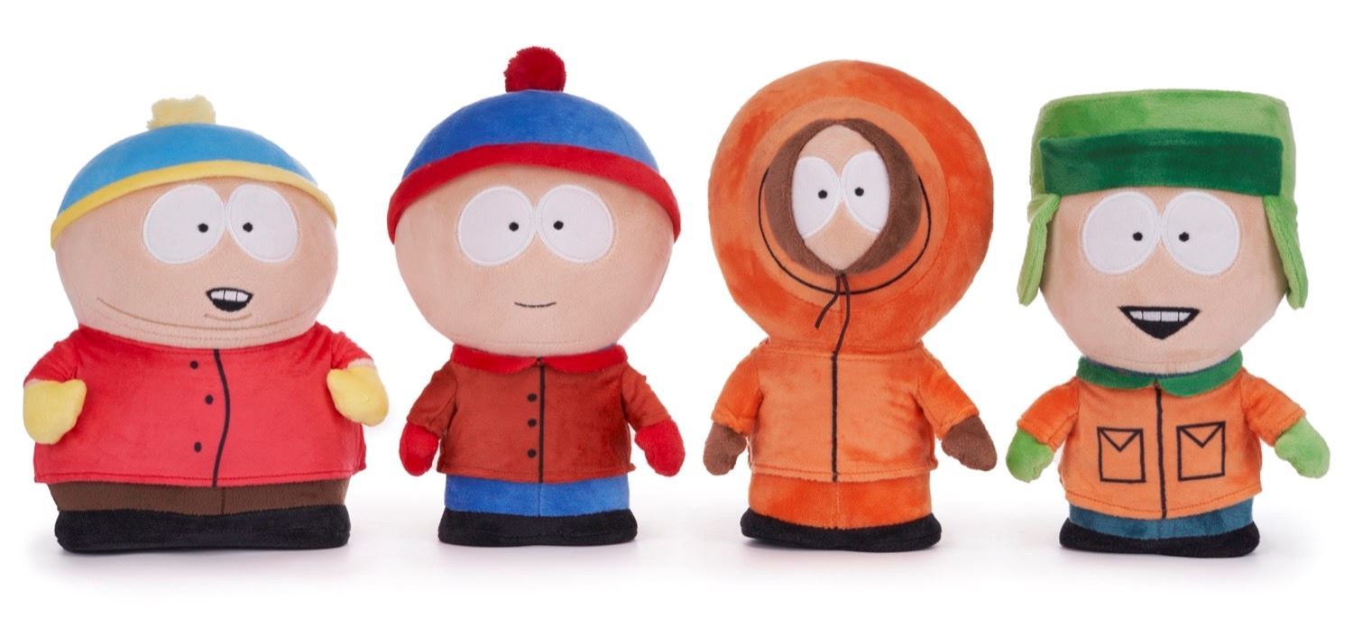 An assortment of four South Park soft plush toys. Enjoy playing with and cuddling up with Eric, Kenny, Stan and Kylie. Suitable from birth. Each plush toy measures approximately 10.5" in height.